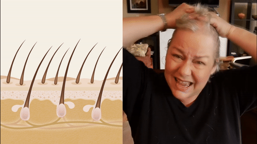 Loss of collagen, hair follicles are as dry as a punctured tire.